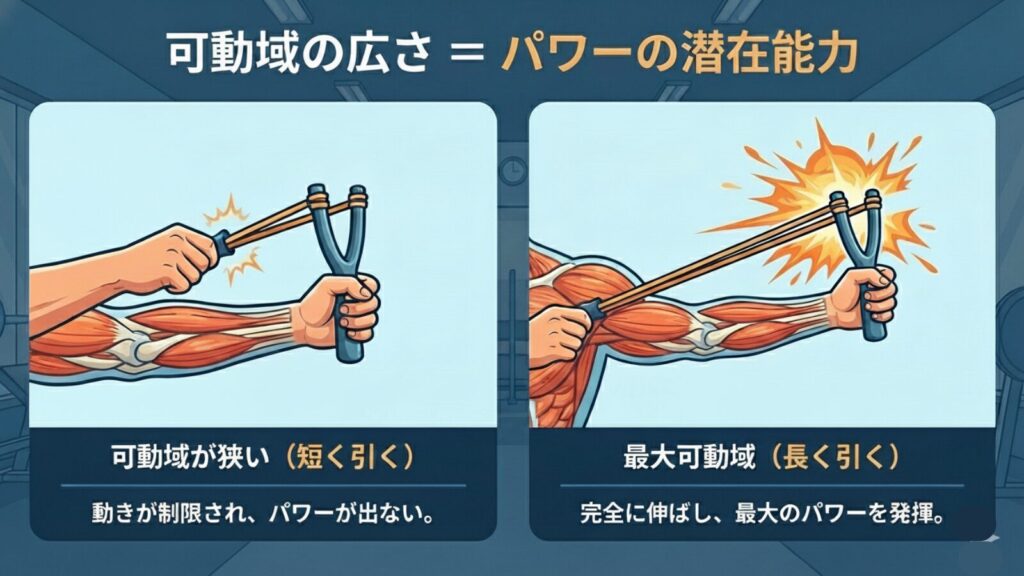 - 関節の可動域:力を発揮するための「助走距離」を確保する