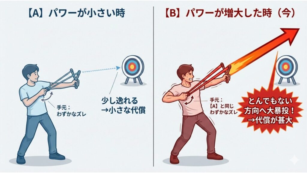 また筋量や筋力が上がっているとなると、力が上がった分、ズレの影響が大きくなります。
